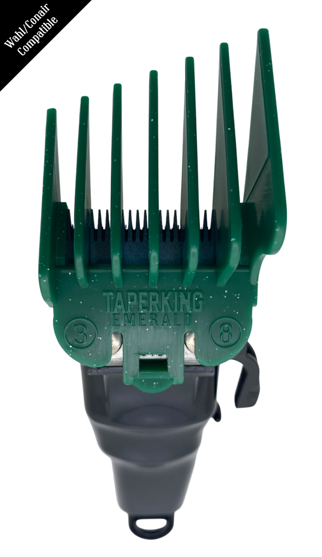 Simply clip on the Taper King Guide Comb onto your hair clippers to achieve the perfect taper or fade today (when ordering, be sure to select the guards that fit your specific clipper brand)!