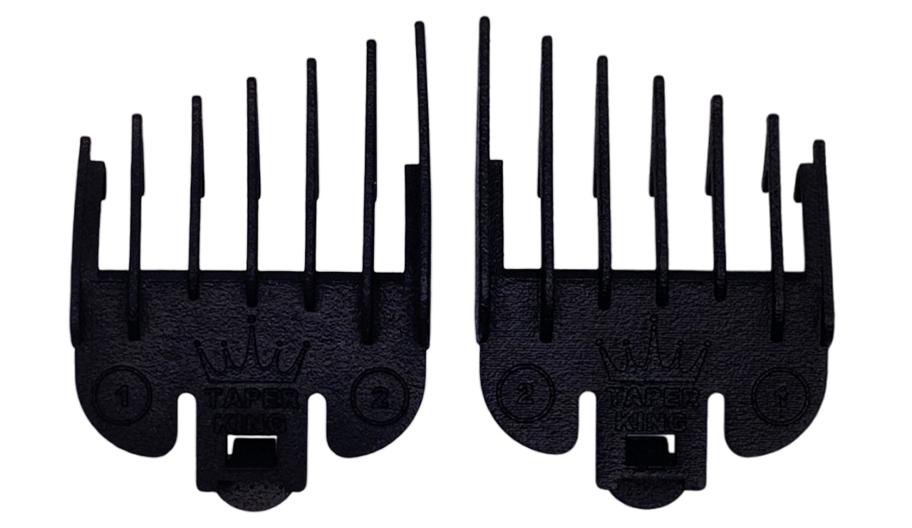 Simply clip on the Taper King Guide Comb onto your hair clippers to achieve the perfect taper or fade today (when ordering, be sure to select the guards that fit your specific clipper brand)!